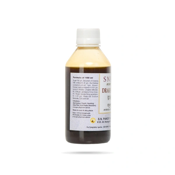 Dosage: Typically, the recommended dosage for Drakshadi syrup is around 10-15 ml, twice a day, preferably before meals. The powder form can be taken in smaller doses, as directed by an Ayurvedic practitioner.