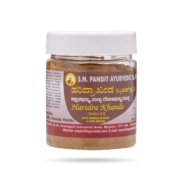 Haridra Khanda (Brihat) is an Ayurvedic formulation by S.N. Pandit, designed to manage upper respiratory tract infections and allergies, such as allergic rhinitis and severe sneezing. It also aids in treating skin disorders like eczema and acne.