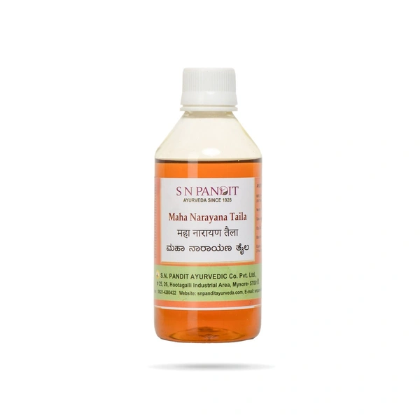 Maha Narayana Taila (or Maha Narayan Oil) is a traditional Ayurvedic medicated oil used for relieving joint pain, muscle stiffness, and various neuromuscular disorders. It is enriched with a blend of potent herbs infused in a base of sesame oil, making it highly beneficial for arthritis, paralysis, rheumatism, and overall muscle rejuvenation.