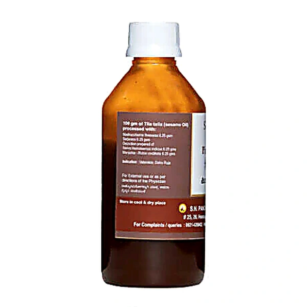 The oil is typically made with a combination of herbal ingredients such as sesame oil, turmeric, ginger, and other Ayurvedic herbs known for their anti-inflammatory and pain-relieving properties. It’s commonly used for conditions like arthritis, muscle stiffness, and sprains.