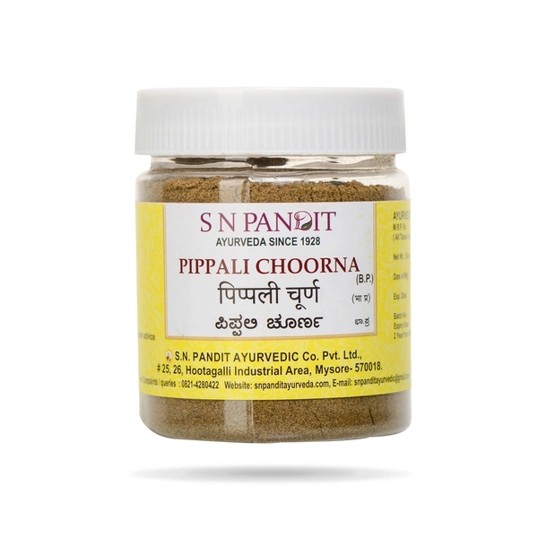 Pippali Choorna is an Ayurvedic herbal powder made primarily from Pippali (Piper longum), which is also known as long pepper. Pippali has been used in traditional medicine for centuries for its various therapeutic properties.