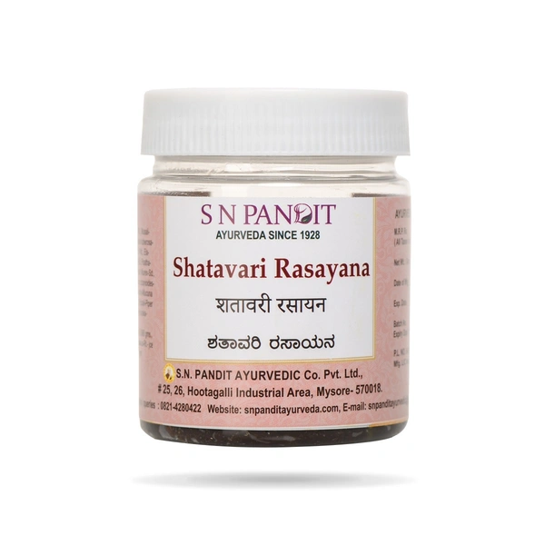 Shatavari Rasayana is an Ayurvedic herbal formulation primarily made from Shatavari (Asparagus racemosus), a powerful adaptogenic herb known for its rejuvenating and nourishing properties. It is commonly used in Ayurveda to support women's health, enhance vitality, and promote overall well-being.