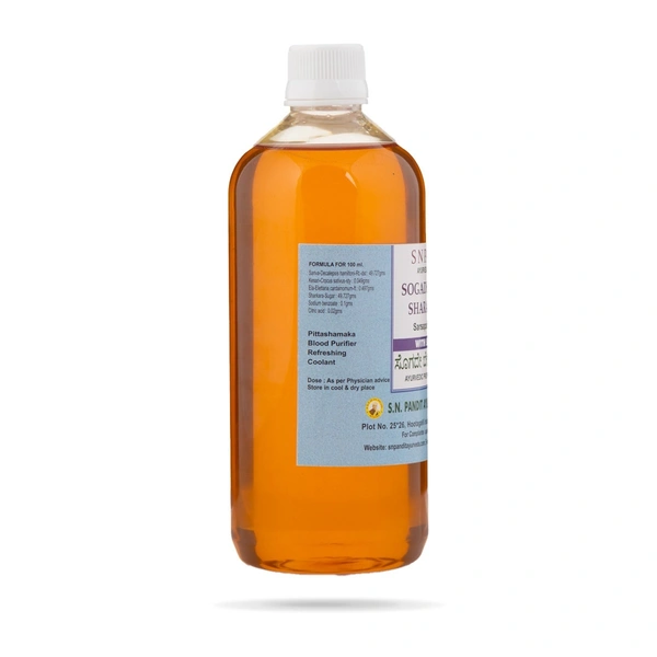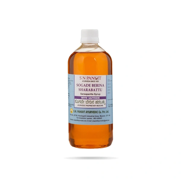 Sogade Berina Sharabattu is an extremely palatable syrup, made by harnessing the medicinal and volatile properties of Sariva (Nannari). Unlike other syrups, available on the market, under the same name, it is made by distillation of Sariva, thus preserving its medicinal and aromatic properties. It is tastefully made into a sweet syrup, with the addition of elaichi ( cardamom) and enriched its medicinal properties by the addition of pure Kashmiri saffron. It is the best to reduce aggravated heat (pitta) and helps fight heat exhaustion and hyperacidity. It promotes instant energy.