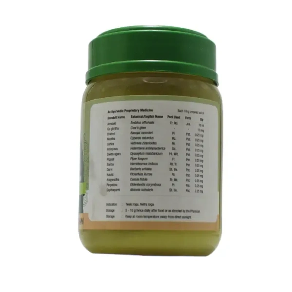 Balances Pitta and Kapha doshas, reduces systemic and ocular inflammation.