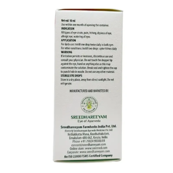 Sunetra Junior Eye Drops are a gentle, herbal ophthalmic solution tailored specifically for children (below 17 years old). Formulated by Sreedhareeyam, this sterile eye drop mirrors the pH of natural tears, offering soothing relief for dry, irritated, or strained eyes—especially due to prolonged digital screen exposure or environmental factors.