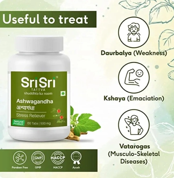 Sri Sri Tattva Ashwagandha Tablet is a health supplement that can help overcome weakness and fatigue. It can be effective in reducing anxiety and stress. It contains the herbal root extract of ashwagandha and is an all-natural tablet.