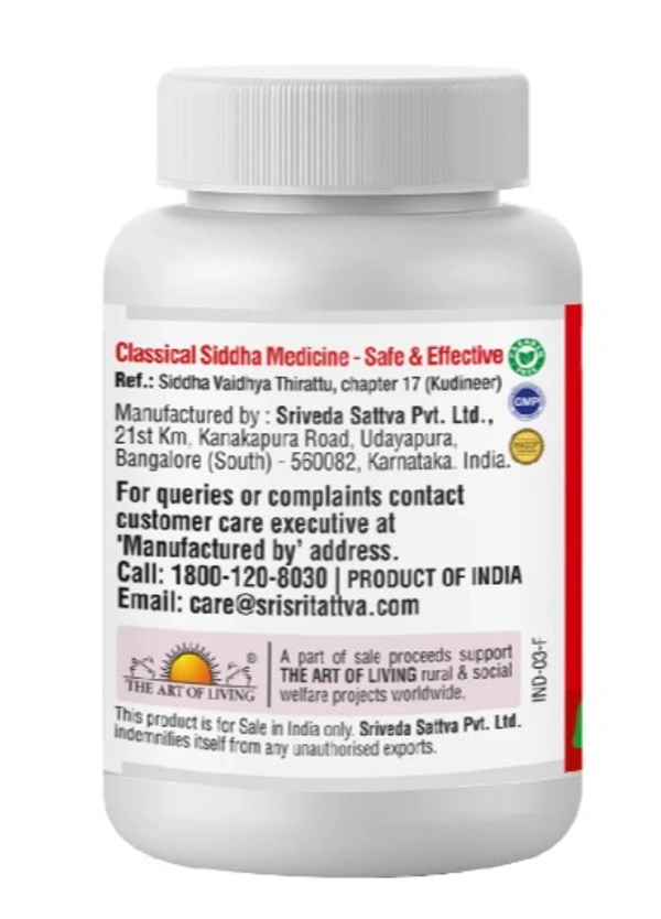 - Sri Sri Tattva Kabasura Kudineer Tablet possesses strong anti-inflammatory, analgesic, anti-viral, anti-bacterial, anti-fungal, antioxidant, hepato-protective, antipyretic, anti-asthmatic and immunomodulatory properties