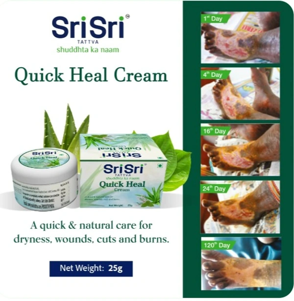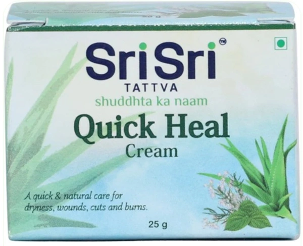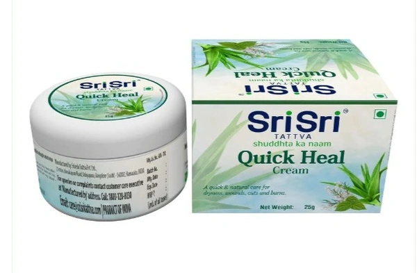 Sri Sri Tattva Quick Heal Cream is made from Ayurvedic ingredients. It is a versatile cream that can be used on cuts, scrapes, burns, eczema, psoriasis, topical allergies, rashes and a selection of other skin complaints and problems.