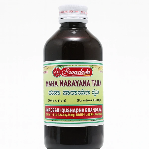 Discover the timeless benefits of Maha Narayana Taila - Swadeshi, an authentic Ayurvedic oil crafted with precision and care by SWADESHI s1. This premium herbal formulation is designed to provide holistic wellness and rejuvenation, rooted in centuries-old traditions of natural healing. Whether you're seeking relief from discomfort, relaxation, or daily nourishment for your body, this versatile oil is the perfect addition to your self-care routine.