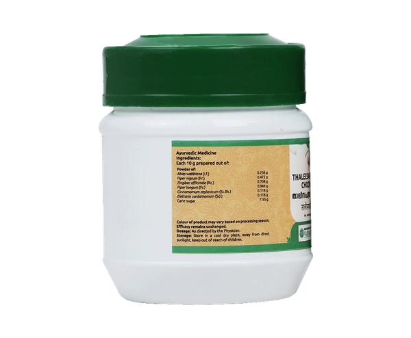 Vaidyaratnam Thaleesapathradi Choorna is a traditional Ayurvedic herbal powder formulated to support digestion, enhance metabolism, and maintain overall gastrointestinal health.